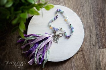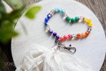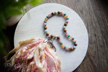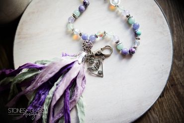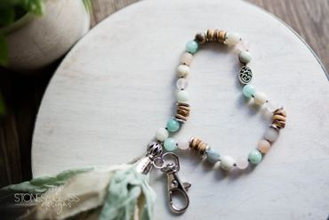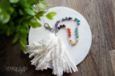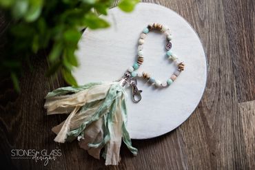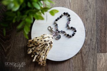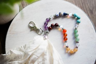 Consciousness on the go! When I wear my Mala bracelets and necklaces, they ground me, center me and remind me to be in the moment. BUT, not everyone likes jewelry. My hope is that these wristlets will provide the same benefits. Attach them to your bag, just carry them around your wrist, put your keys on them, keep them handy and when you need, let them bring you back to the here and now.
